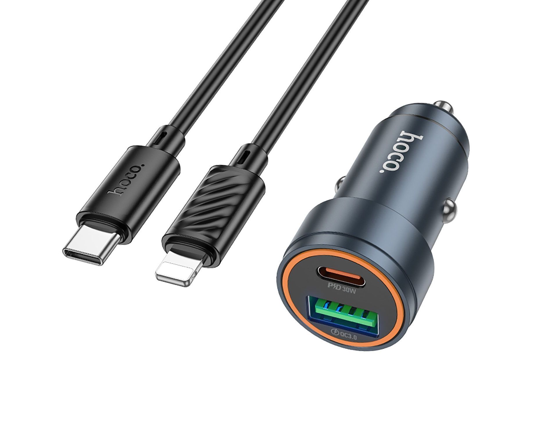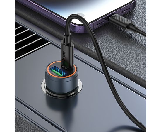 Адаптер Автомобильный с кабелем Hoco Z57A Glorious PD30W+QC3.0 (Type-C/Lightning) (metal gra(236198)