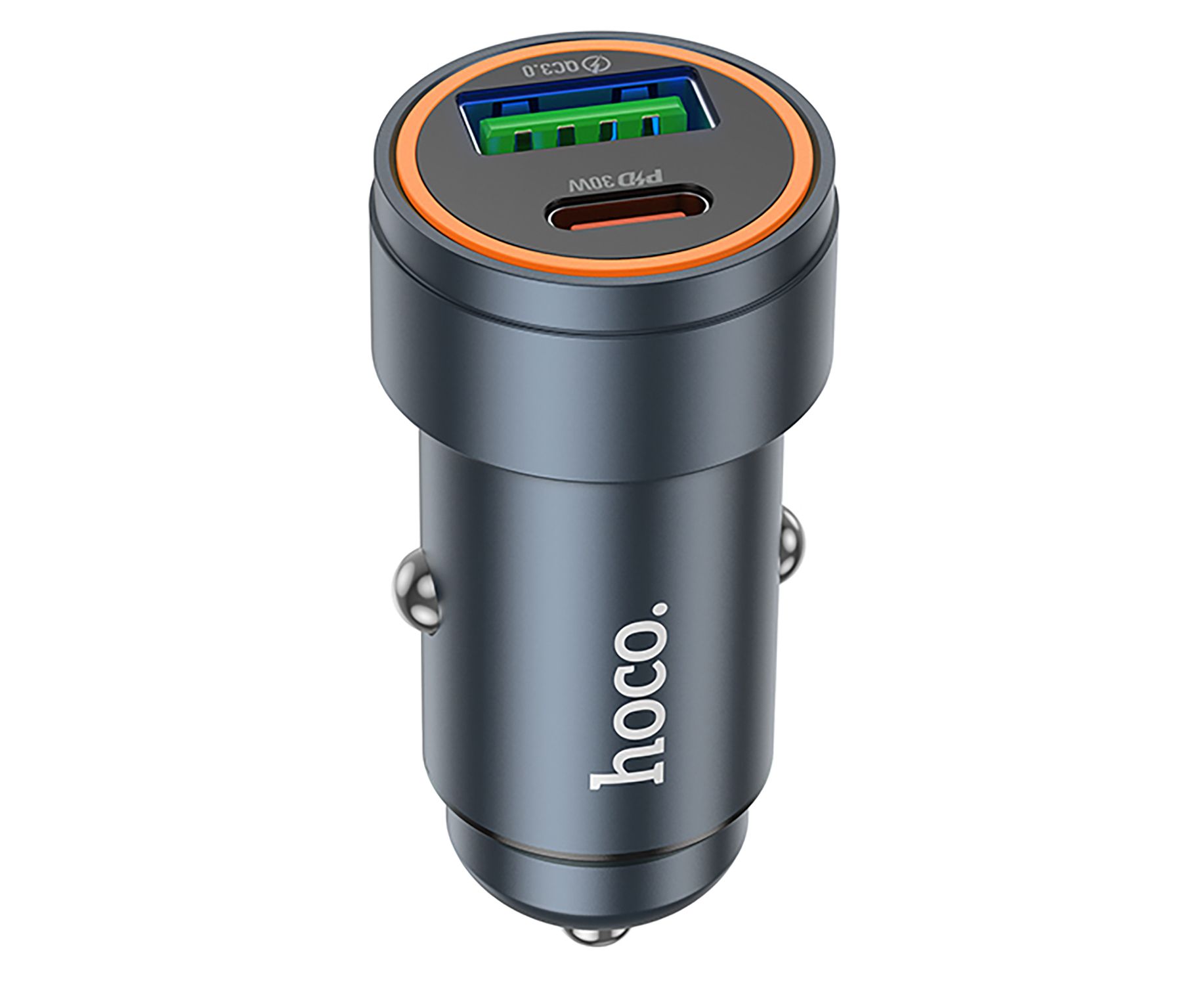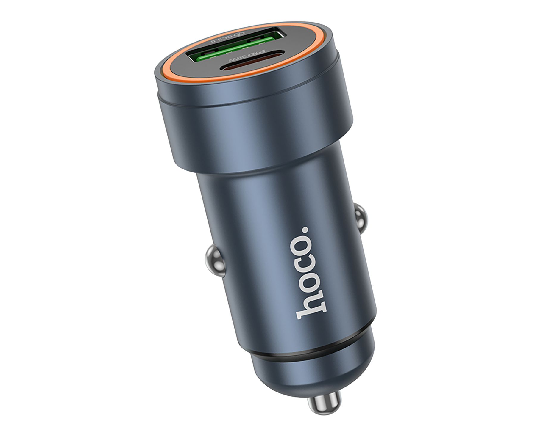 Адаптер Автомобильный с кабелем Hoco Z57A Glorious PD30W+QC3.0 (Type-C/Type-C) (metal gray) (236200)