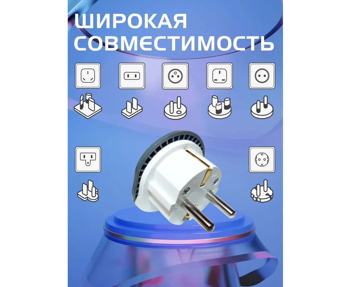 Для вилок: US - Type A, EU - Type C, UK - Type G, Australia - Type I, Switzerland - Type J, Italian - Type L.