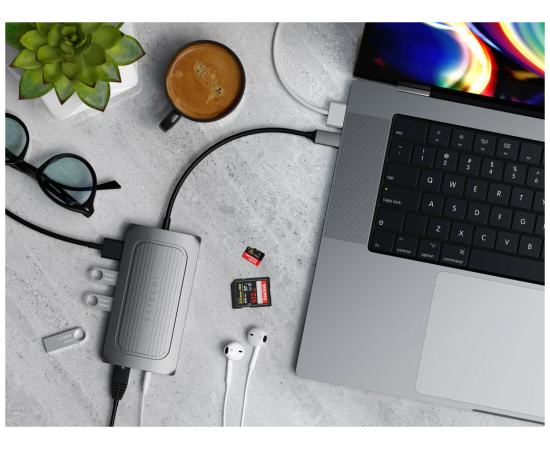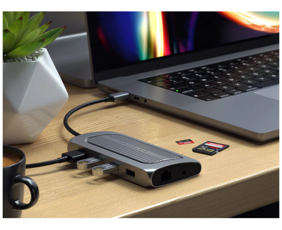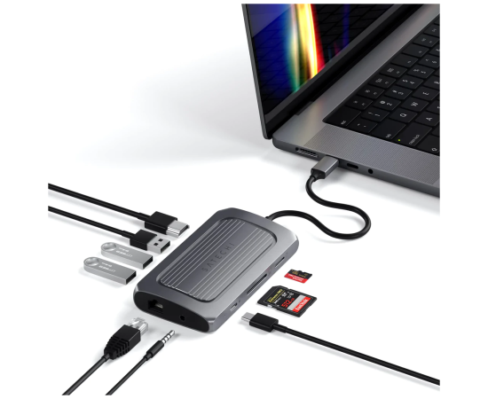 Мощный и одновременно ультра-стильный адаптер оснащен портом HDMI 8K, Gigabit Ethernet, USB-C PD, USB-A для передачи данных, устройствами чтения карт SD и портом аудиоразъема – и все это через один порт USB-C.
