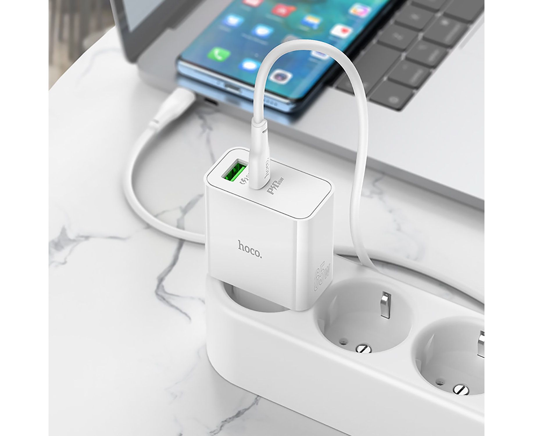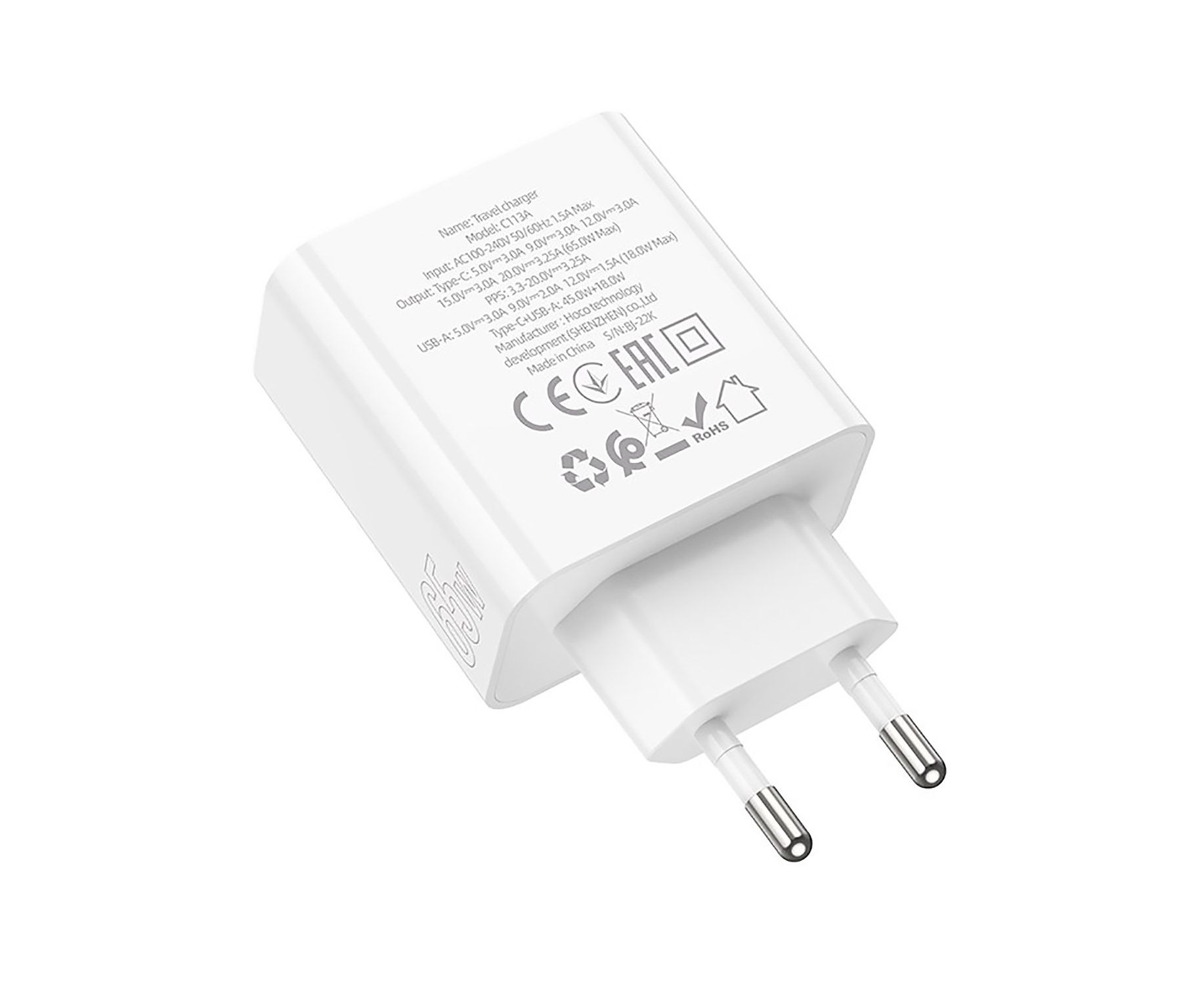 Адаптер Сетевой Hoco C113A PD USB/Type-C 65W (USB/Type-C) (white) (215772)
