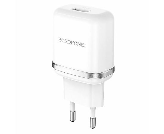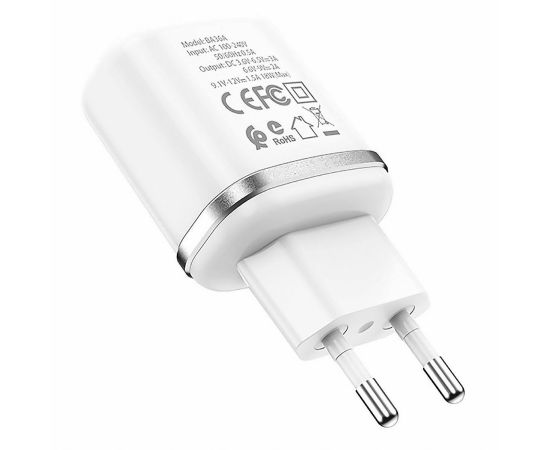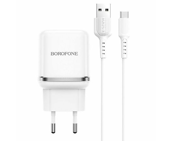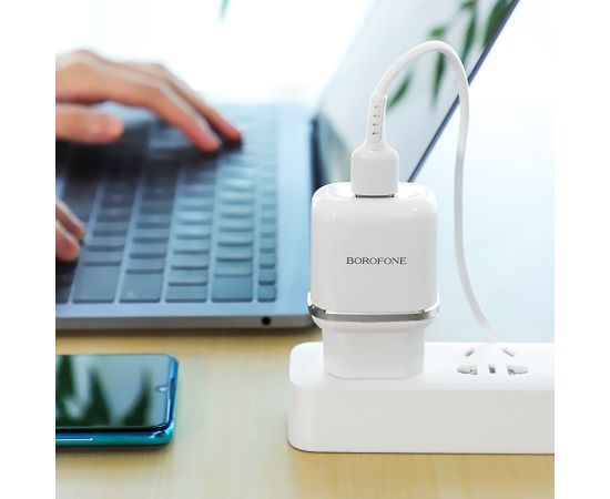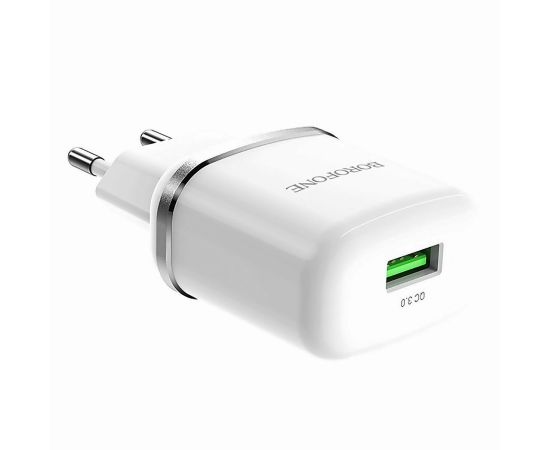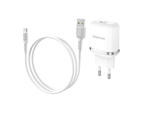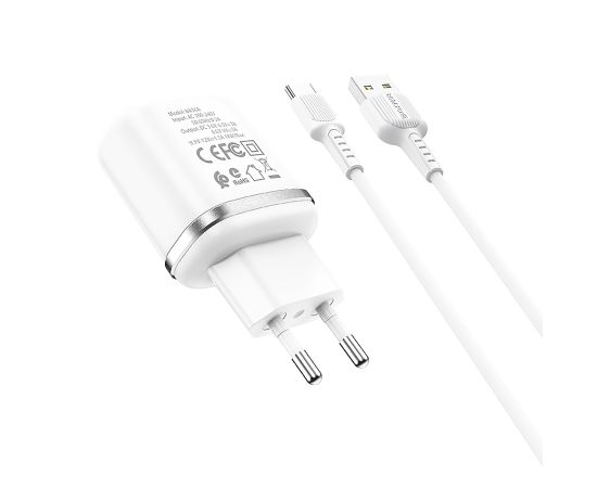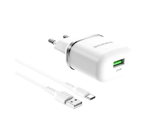 Адаптер Сетевой с кабелем Borofone BA36A High 1USB/5V/3A QC3.0 +Type-C (white) (133681)