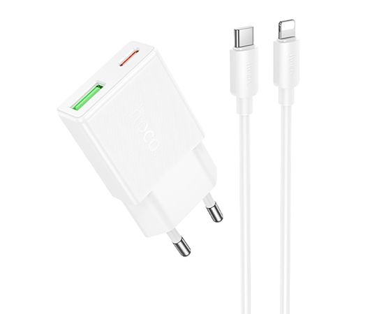 Адаптер Сетевой с кабелем Hoco N73 Mini PD+QC3.0 USB/Type-C 20W (Type-C/Lightning) (white) (242973)
