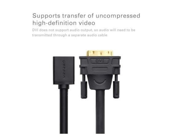 Адаптер UGREEN 20118 DVI Male to HDMI Female Adapter Cable 22cm Black