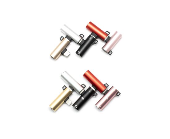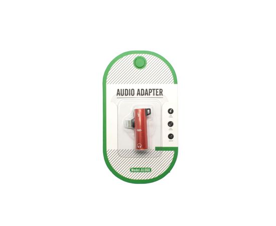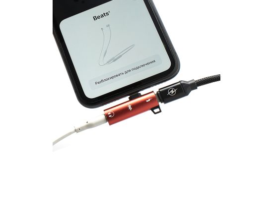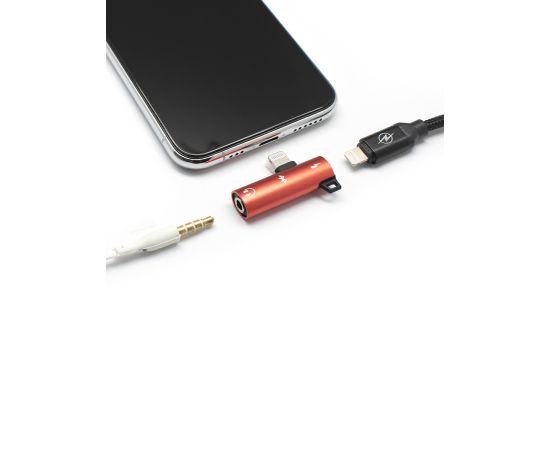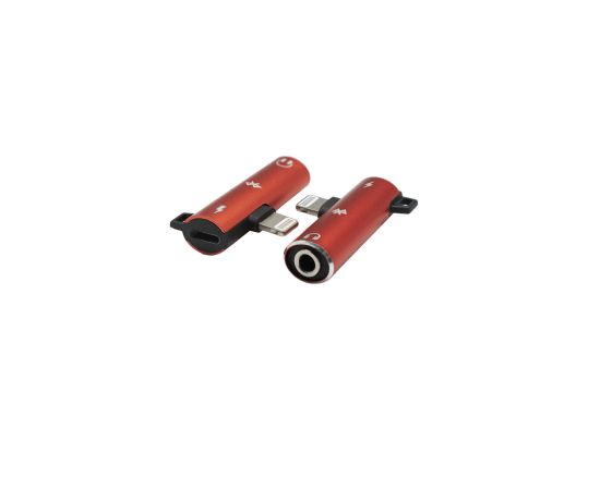 Адаптер USB Lightning(M) на Jack 3.5 мм(F)+Lightning(F), красный, блистер