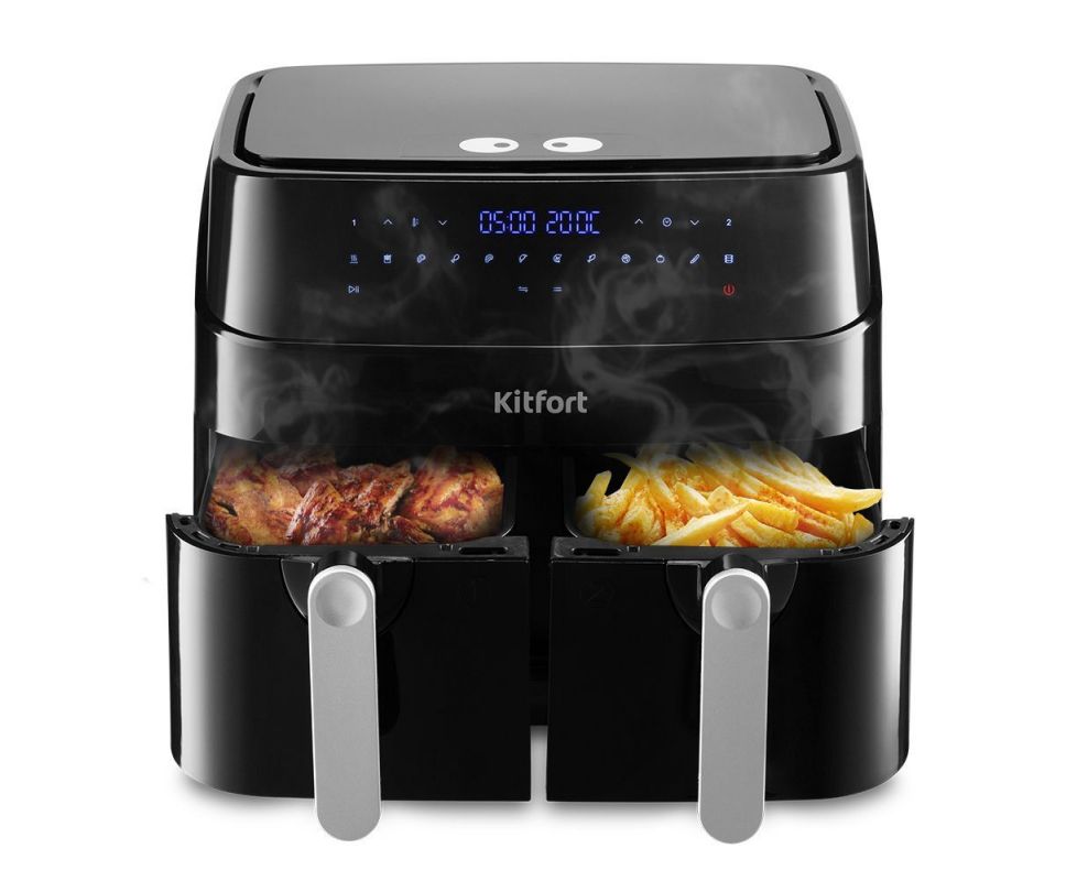 Функциональный аэрогриль КТ-2250 может использоваться как аэрогриль, аэрофритюрница, а также как духовка. Позволяет готовить несколько блюд одновременно с минимальным количеством масла или вовсе без его добавления!