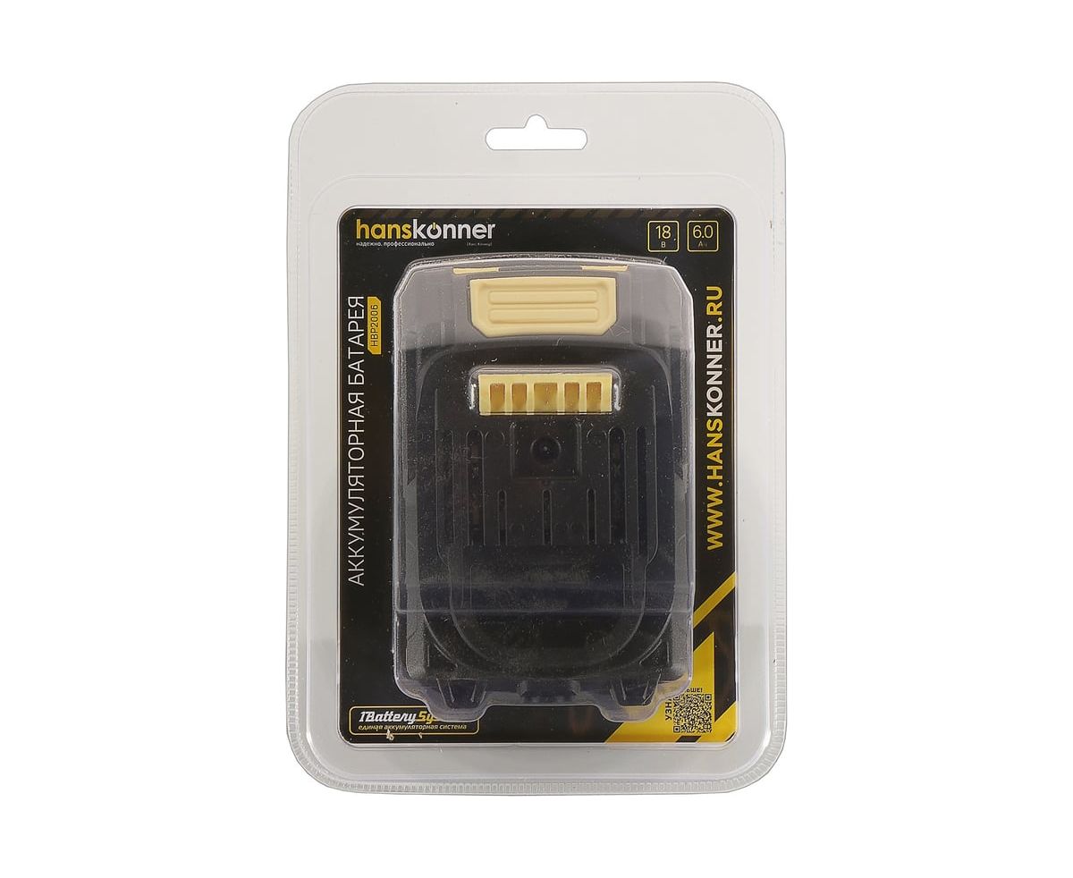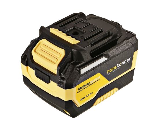 18-вольтовый аккумулятор HBP2006 Hanskonner емкостью 6.0 Ач обеспечивает впечатляющую мощность и совместим с любым инструментом единой аккумуляторной системы 1BatterySystem.