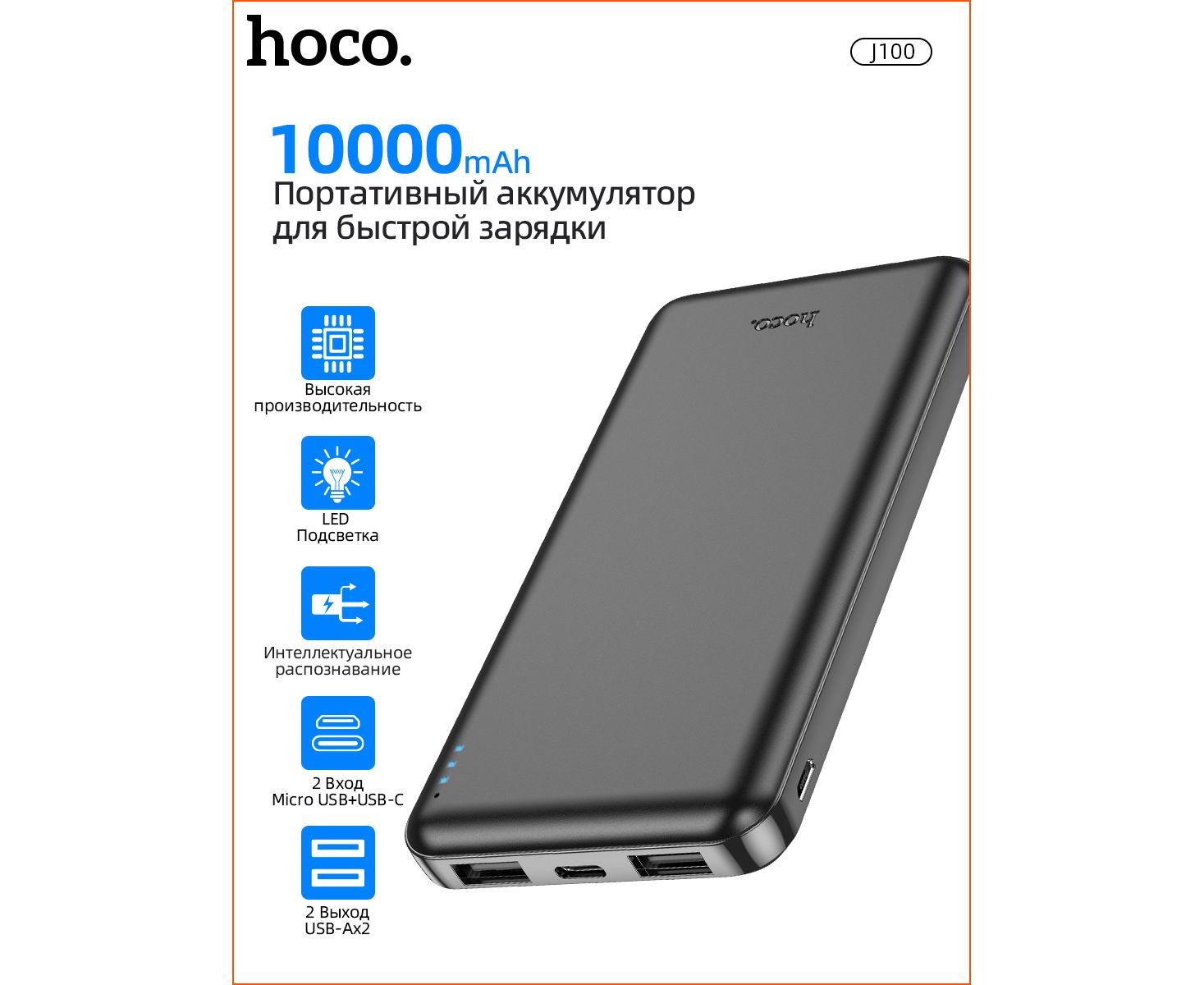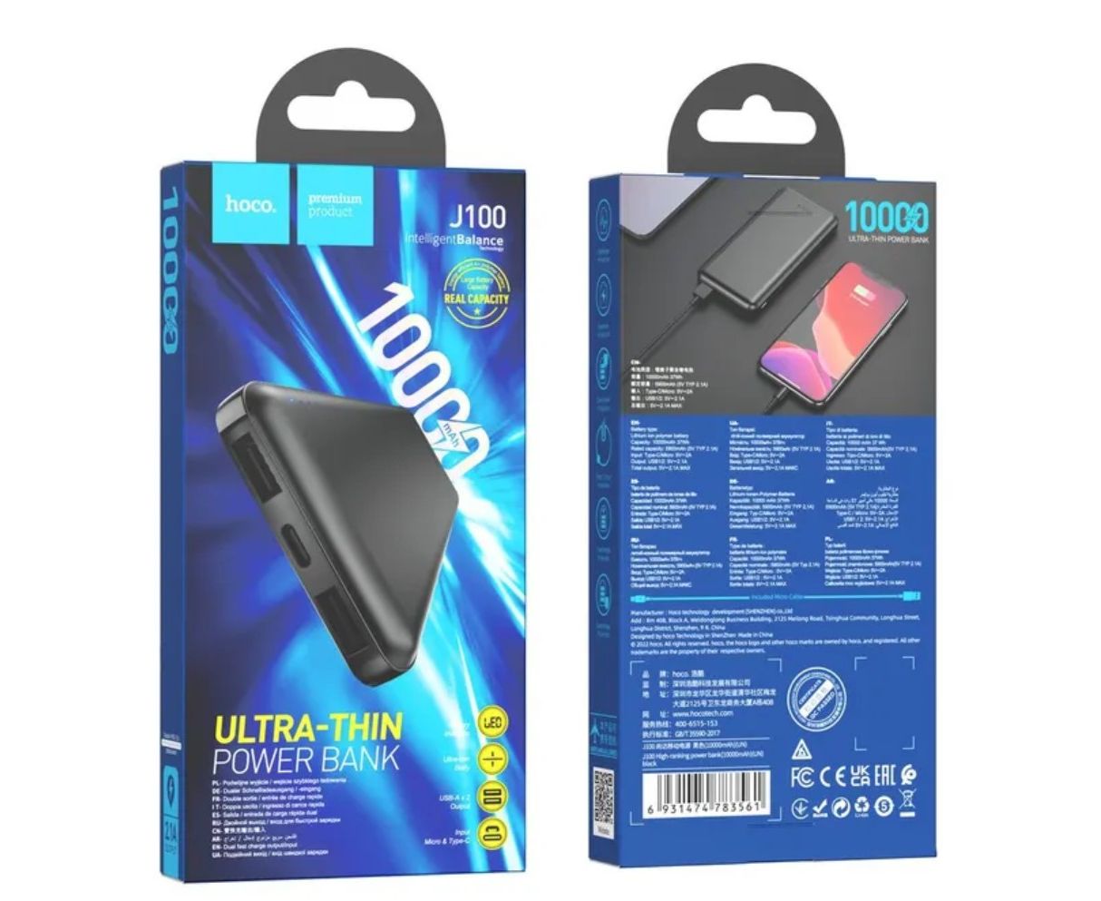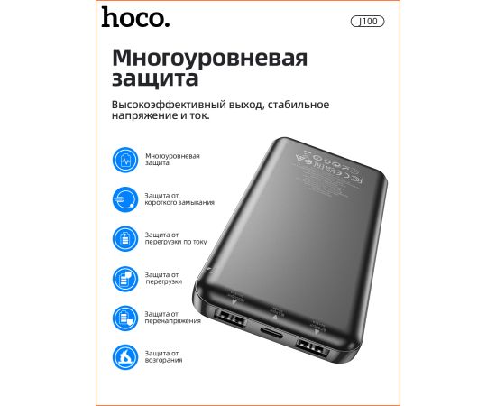 Аккумулятор внешний резервный HOCO J100 High-ranking 10000 mAh (чёрный)