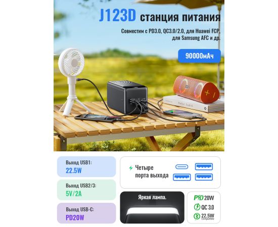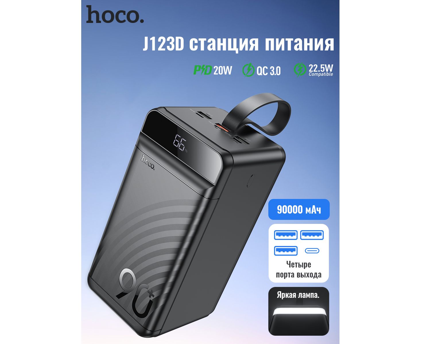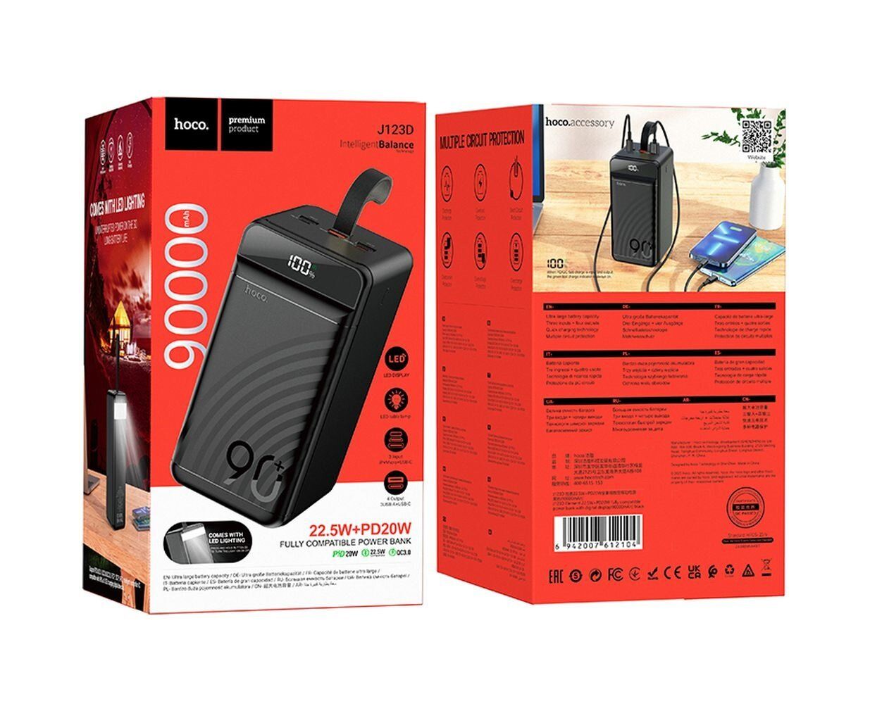 Аккумулятор внешний резервный HOCO J123D Element 22.5W+PD20W digital display 90000mAh