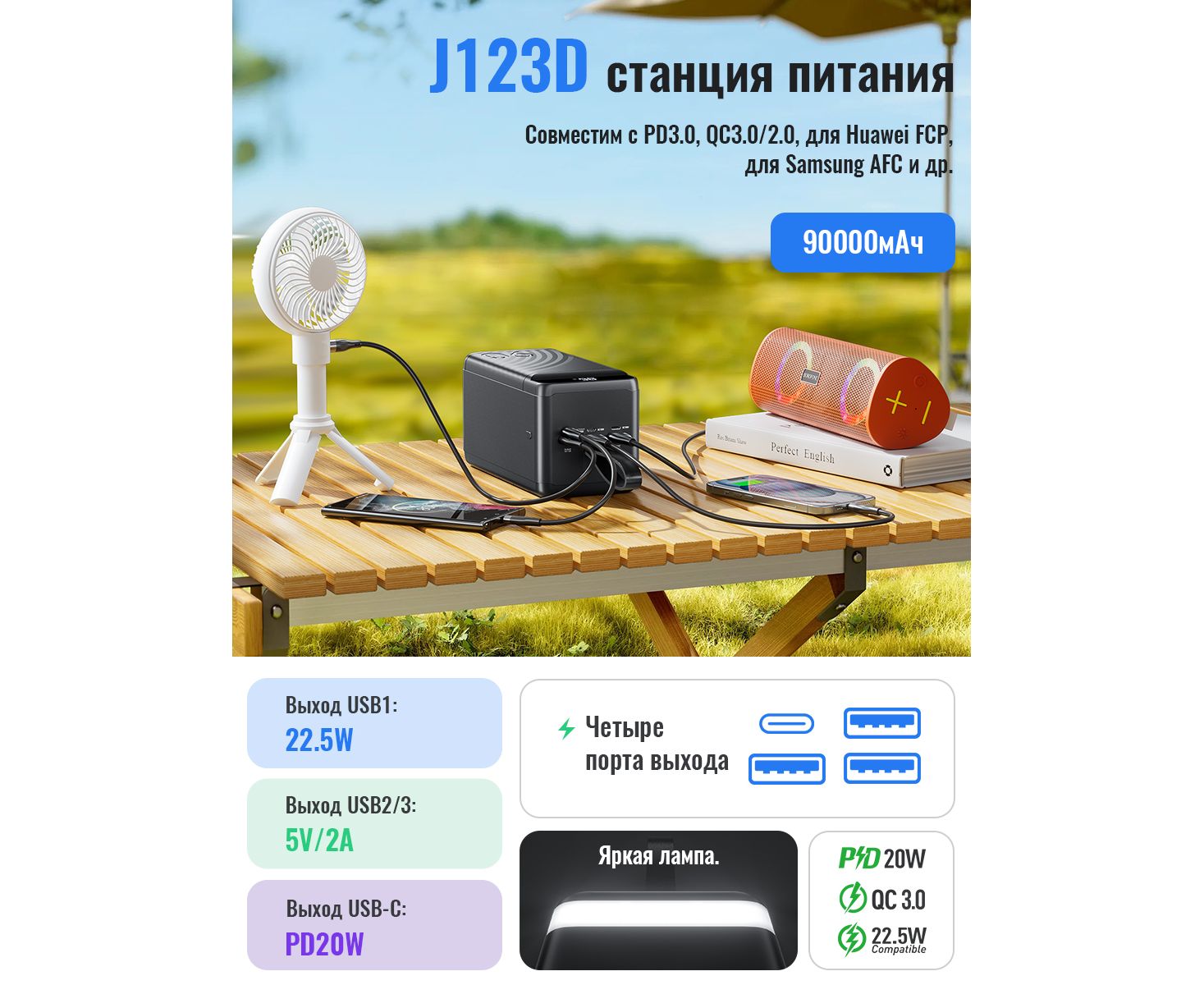 зарядка двух устройств, индикатор заряда, фонарик, Быстрая зарядка Power Delivery, Быстрая зарядка Quick Charge, Дисплей