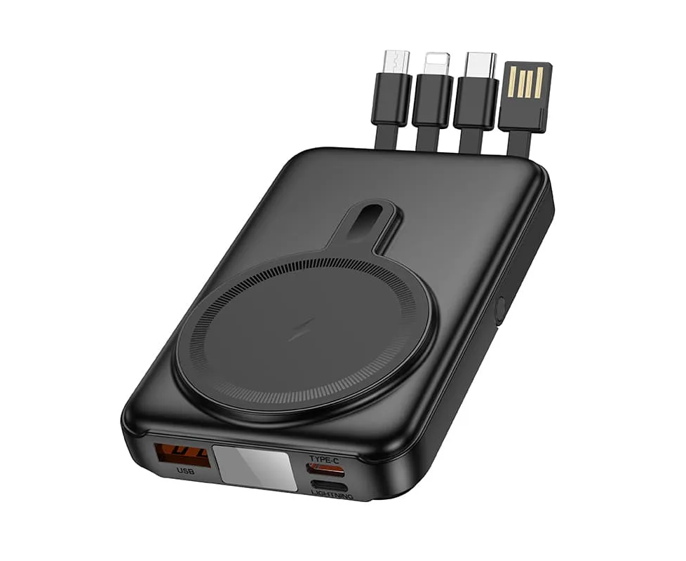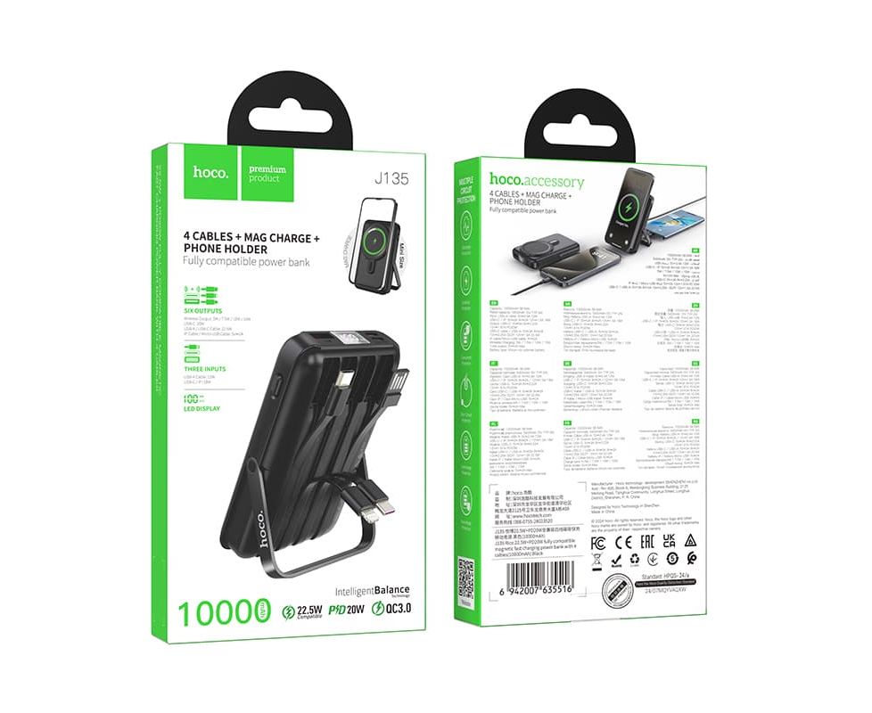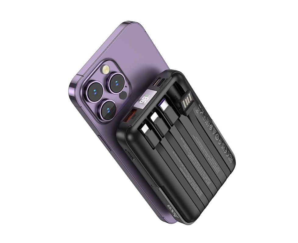 Аккумулятор внешний резервный HOCO J135 Rico 22.5W+PD20W с встроеными кабелями Lightning, Type-C, micro, USB 10000mAh (черный)
