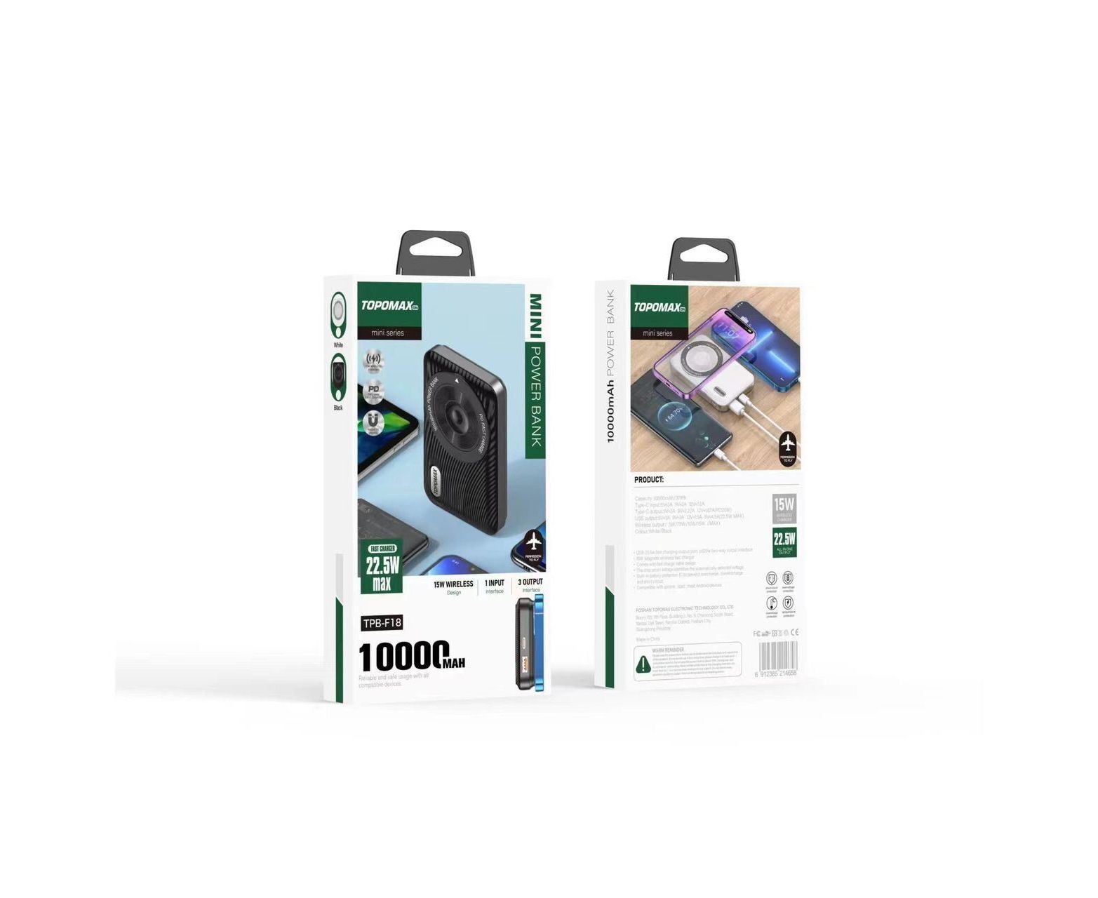 Аккумулятор внешний резервный TOPOMAX TPB-F18 10000mAh, PD 22.5W, wireless charging 15W (черный)