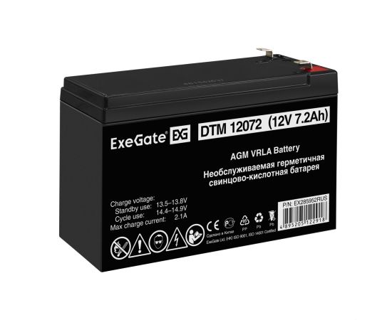 Аккумуляторная батарея ExeGate DTM 12072 (12V 7,2Ah, клеммы F1) 285952