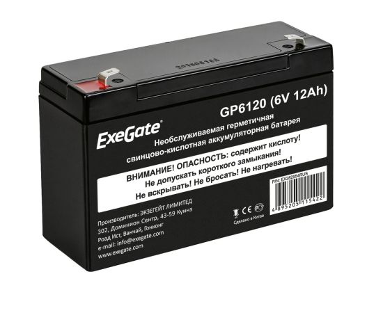 Аккумуляторная батарея ExeGate GP6120 (6V 12Ah, клеммы F1)