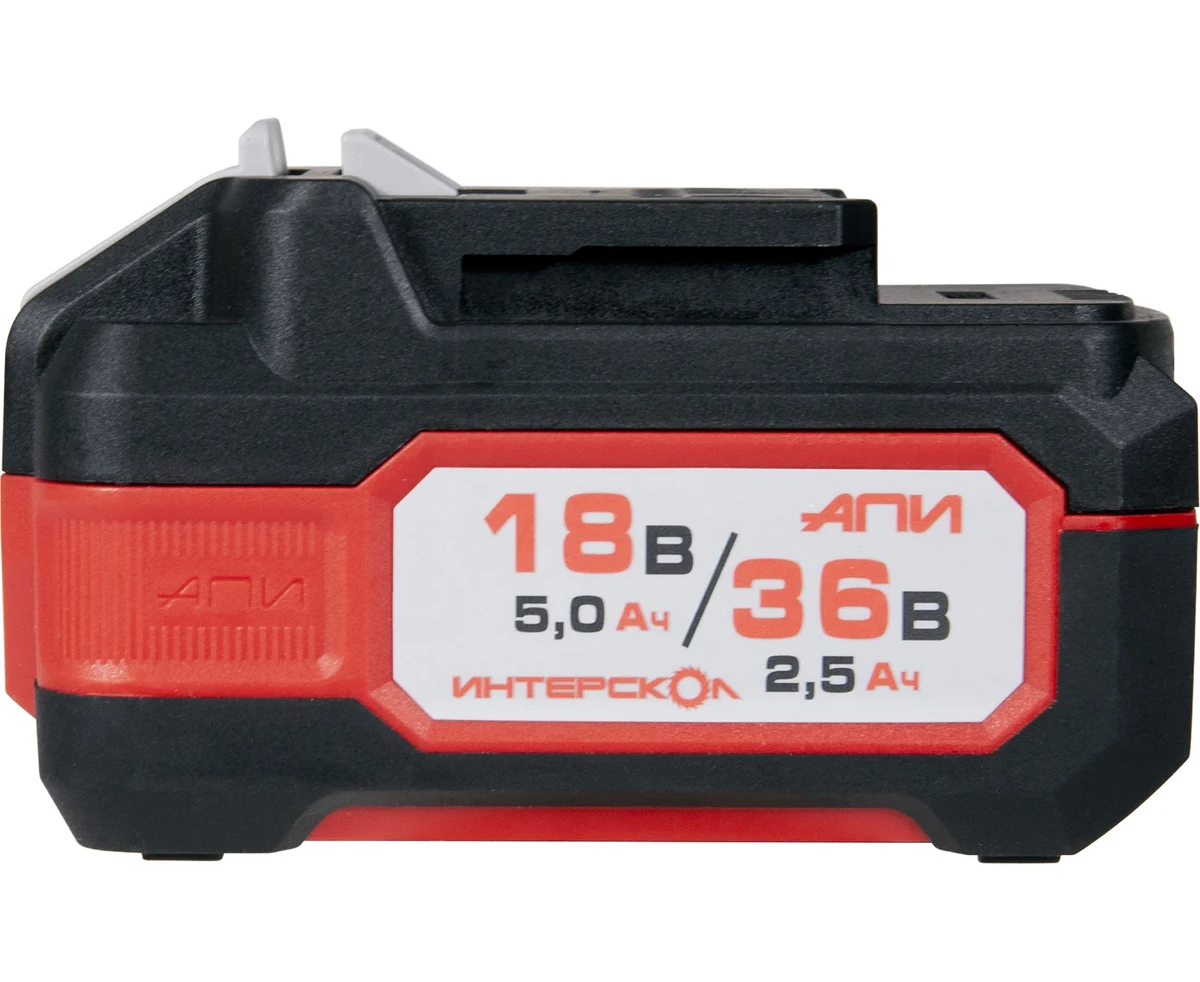 Важнейшая новинка аккумуляторной платформы ИНТЕРСКОЛ – литий-ионные аккумуляторные батареи слайдерного типа АПИ 18/36 В и емкостью 5,0/2,5 А∙ч. Их уникальность заключается в способности работать с инструментом, рассчитанным на номинальное напряжение как 18 В, так и 36 В, причем переключение происходит автоматически, полностью исключая вероятность ошибки пользователя.