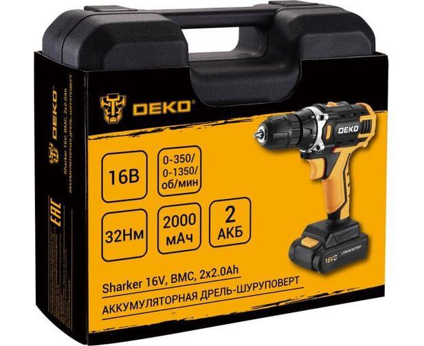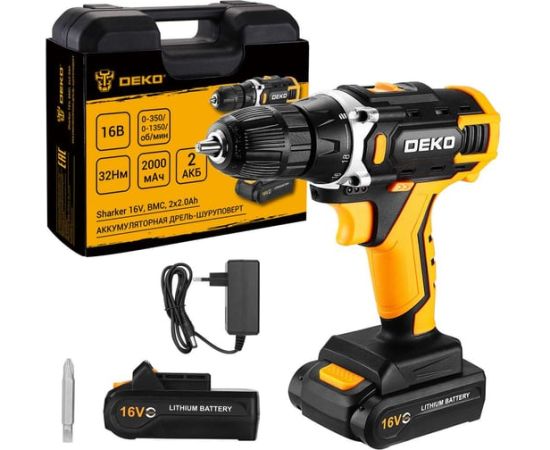 Аккумуляторная дрель-шуруповерт DEKO Sharker 16V (083-1108) в кейсе, 2х2.0Ач