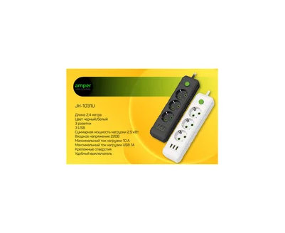 Современный, удобный удлинитель Amper 2м с 3 розетками, 10А, 2,5кВт и 3 USB портами представляет собой идеальное решение для обеспечения безопасного и удобного использования электроприборов в домашних и офисных условиях. Этот фильтр оснащен дополнительными опциями, такими как USB порт, заземление и наличие выключателя, что делает его не только функциональным, но и безопасным выбором.Максимальный ток на USB портах 1А. Честная длина провода, без колодки. С 3 гнездами/розетками и максимальной нагрузкой в 2500 Вт, он способен обеспечить достаточное количество точек подключения для ваших электронных устройств. Напряжение 220 (+/-10%) и частота сети 50 Гц гарантируют совместимость с большинством электроприборов. Тип входной вилки — евро вилка с заземлением, что обеспечивает дополнительную безопасность. Удлинитель Amper является легким и удобным в использовании, подходящим для любого интерьера.