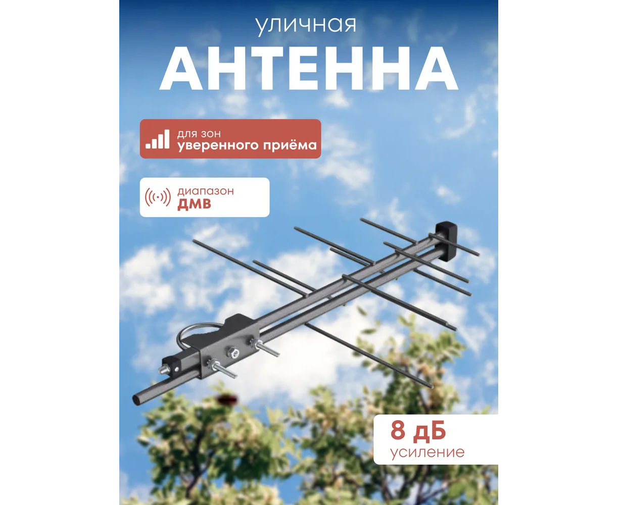 Наружная диапазонная антенна «Двина-DX» оптимально подходит для перехода на цифровой формат телевидения. В зонах неуверенного приёма она обеспечивает работу с аналоговыми ДМВ и цифровыми сигналами DVB-T/T2 телевизионных программ.