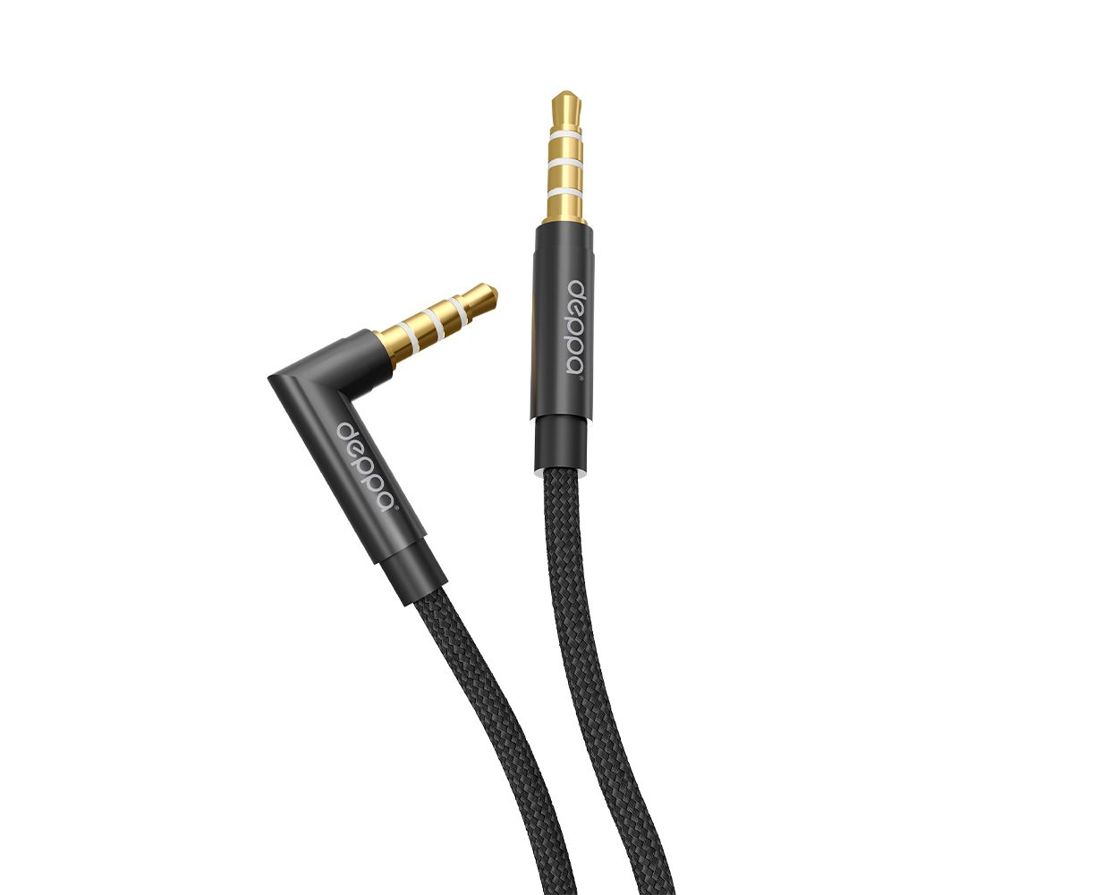 AUX аудиокабель Jack3.5мм - Jack3.5мм, 1.2м, нейлон, L-коннектор, черный, Deppa, 72401