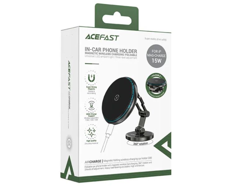 Автодержатель ACEFAST D30 Magnetic folding wireless charging car holder Black