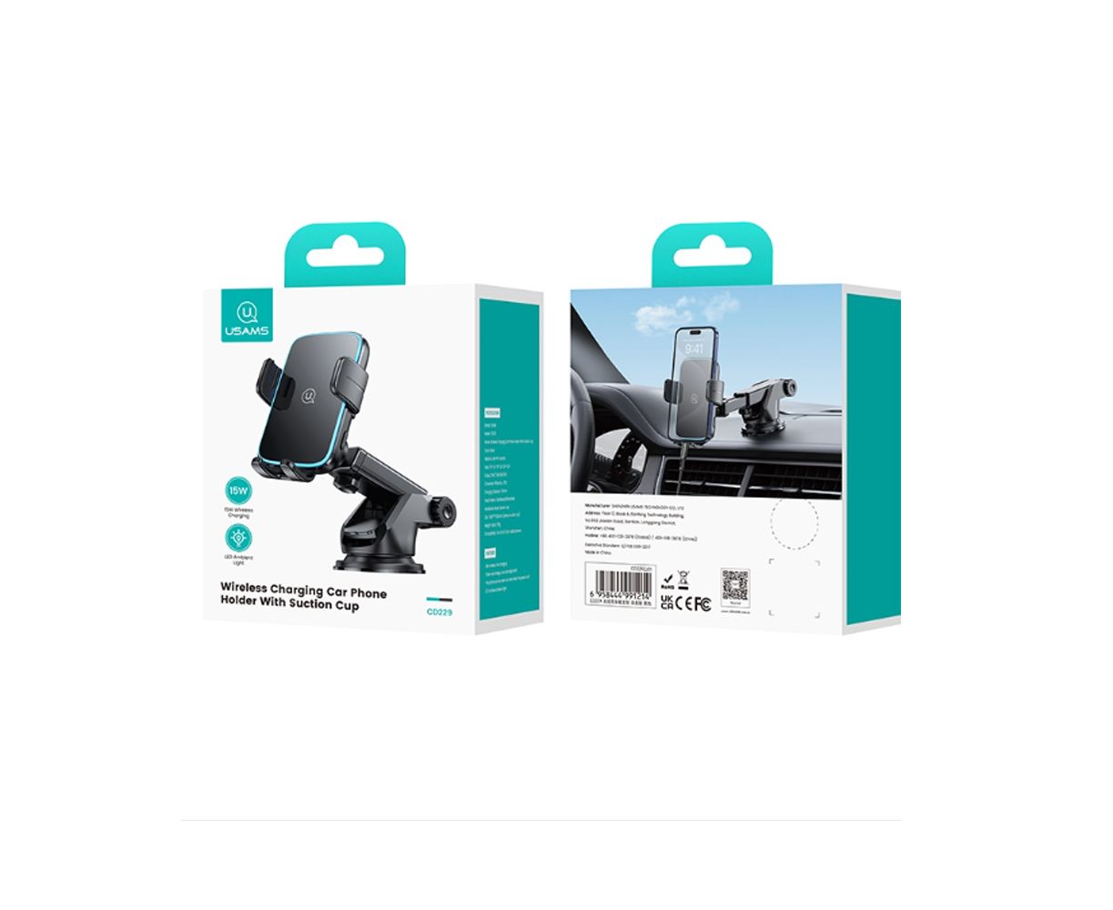 Автодержатель Usams US-CD229 15W, 4,5"-6,7", чёрный