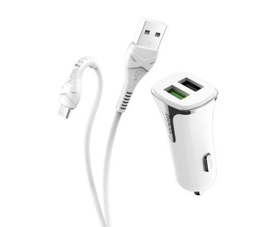Автомобильное зарядное устройство 2USB 2.4A QC3.0 быстрая зарядка с кабелем micro USB HOCO Z31 (White)