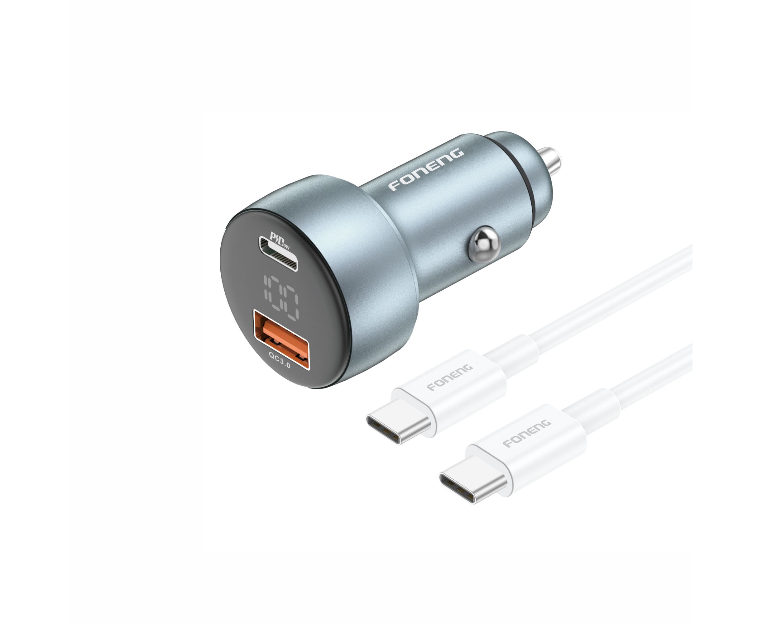 Автомобильное зарядное устройство (АЗУ) Foneng C18 USB + USB-C 48W + кабель Type-C to Type-C (Metal gray / Silver)
