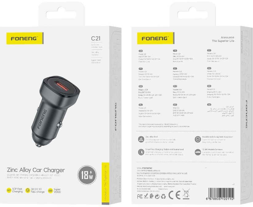 Автомобильное зарядное устройство (АЗУ) Foneng C21 USB 3.0 18W (Dark Gray)