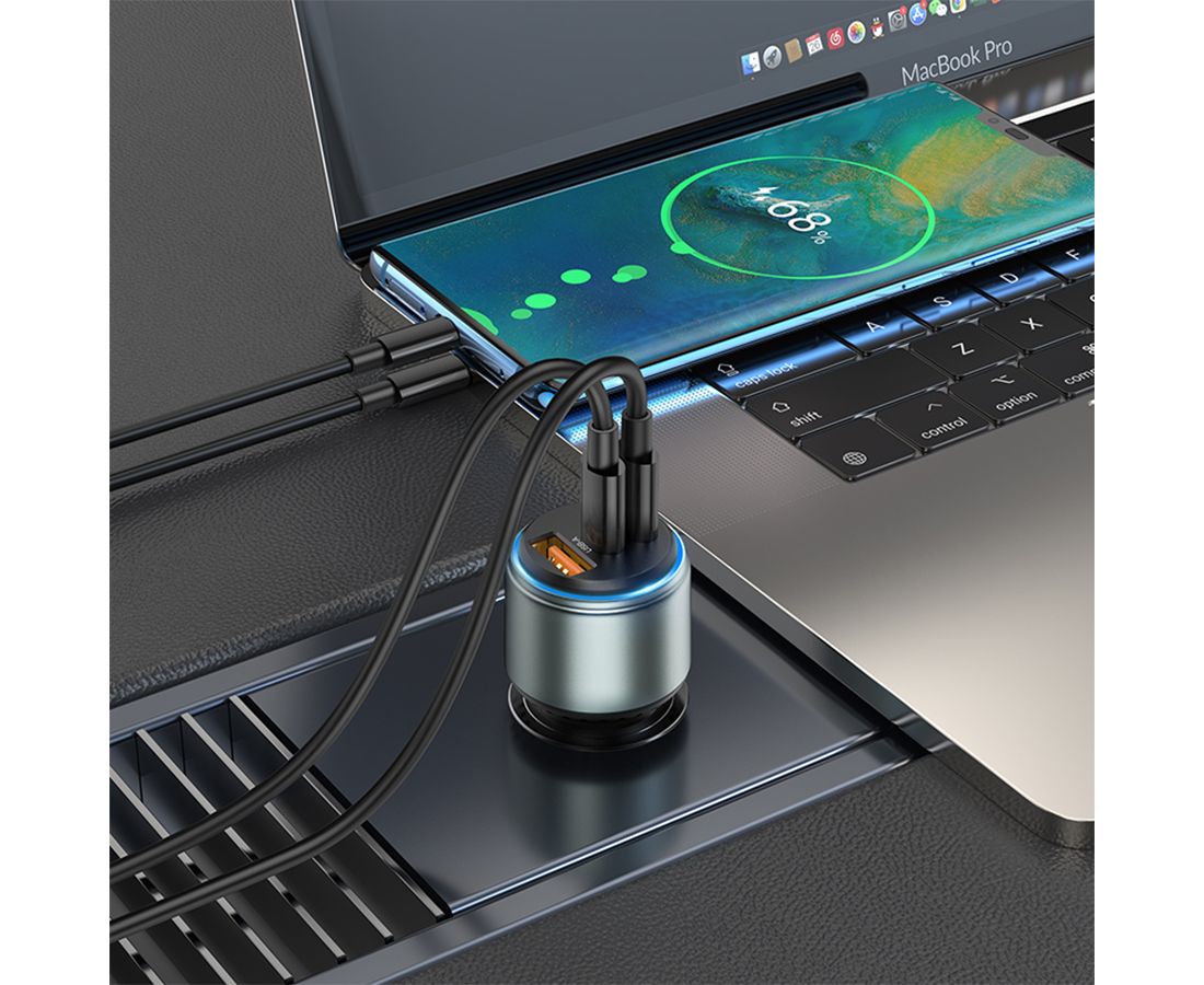 Автомобильное зарядное устройство HOCO NZ9 Galloper, 1xUSB + 2xUSB-C, 95W, черный