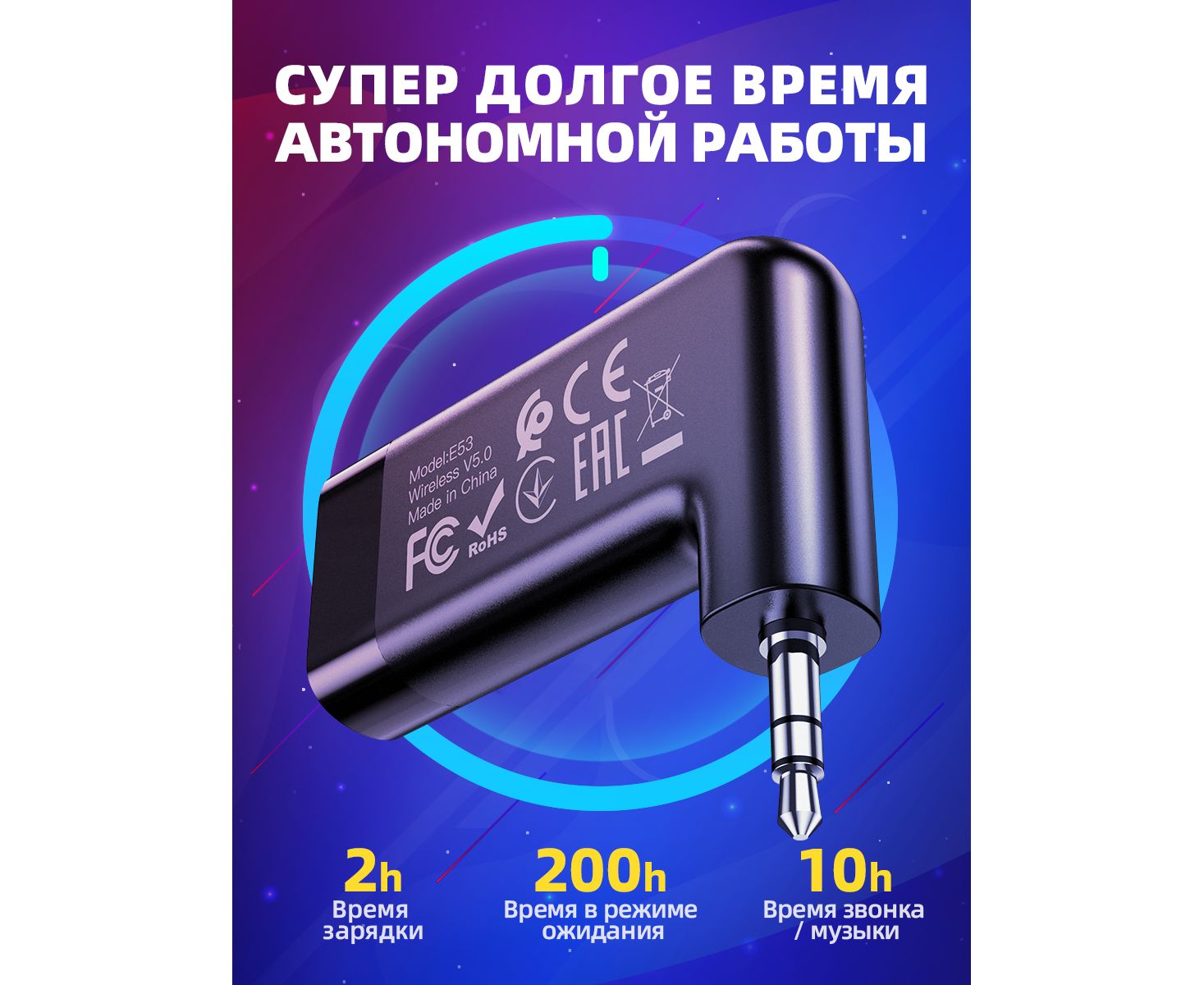 для авто, батарея 145mAh для 10 часов музыки и звонков.