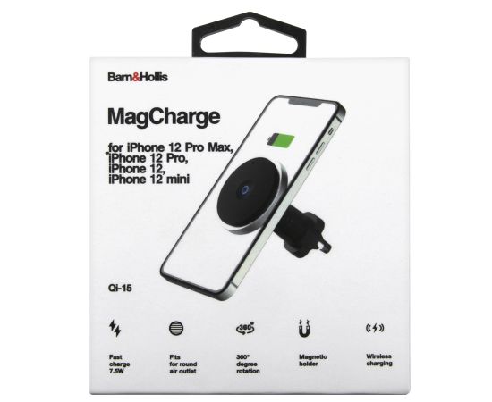 Автомобильный держатель Barn&Hollis Qi-15 MagCharge с беспроводной зарядкой в воздуховод, черный