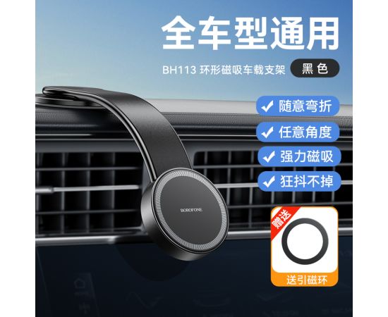 Borofone BH113 - универсальный автомобильный держатель, который буквально освободит ваши руки во время поездок. Его гибкий корпус позволяет легко регулировать угол обзора устройства на 180 градусов, обеспечивая комфортное использование в любом положении. Благодаря магнитной основе и надежному креплению на клейкой поверхности, держатель обеспечивает надежную фиксацию вашего гаджета даже на неровных дорогах.