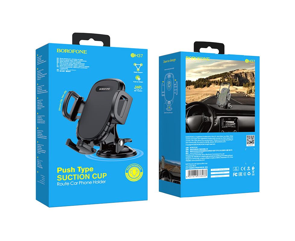 Автомобильный держатель BOROFONE BH37 Route push type suction cup (черный)