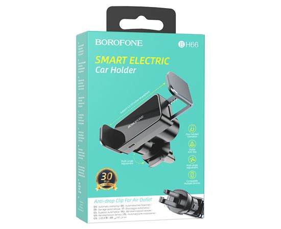 Автомобильный держатель BOROFONE BH66 Smart electric, зажимной, на воздуховод, черный+серый металлик