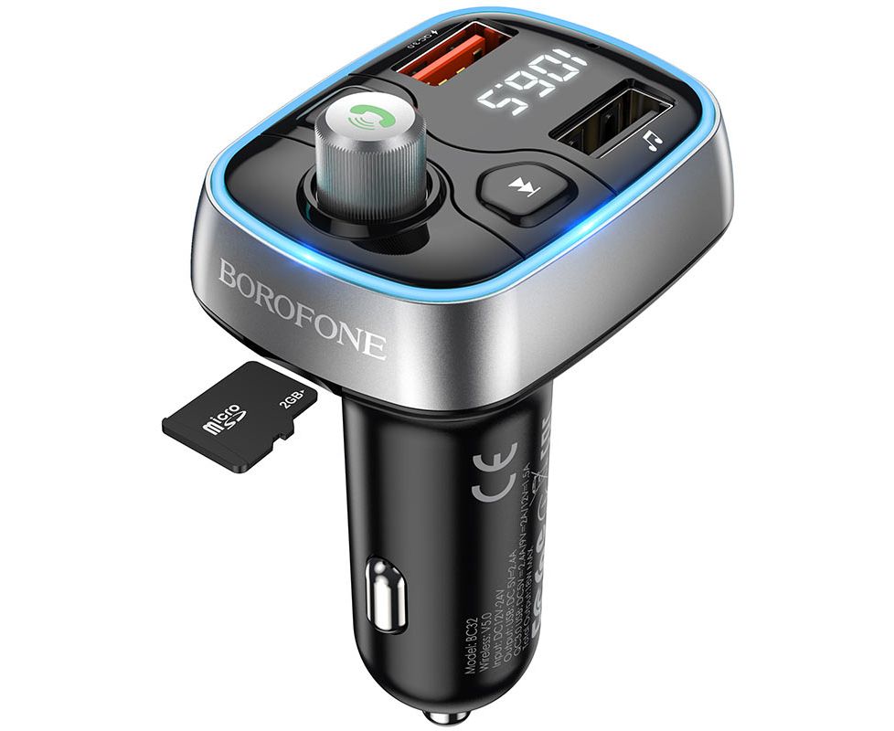 АЗУ Bluetooth FM Трансмиттер BOROFONE BC32 Sunlight (чёрный)