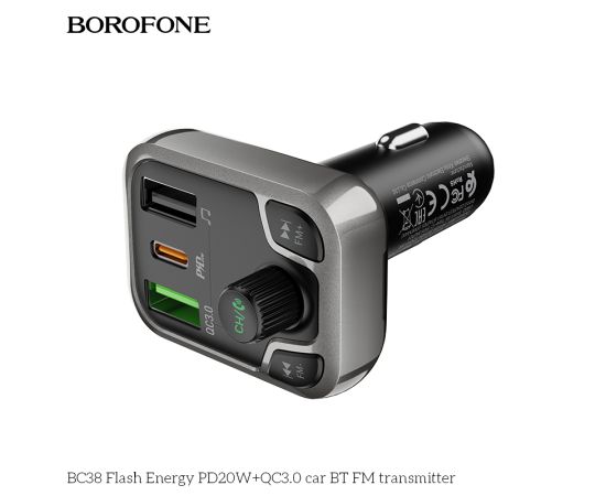 АЗУ BOROFONE Bluetooth FM трансмиттер BC38 Flash Energy PD20W,QC3.0