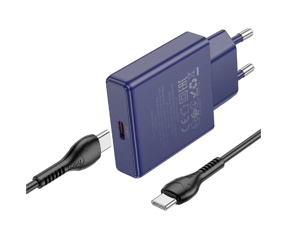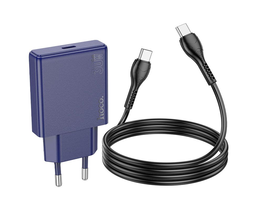 СЗУ HOCO N44 Biscuit single port PD30W charger set(Type-C + Type-C)(EU) (титаново-голубой)