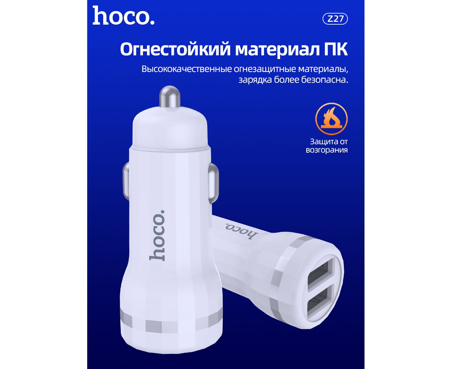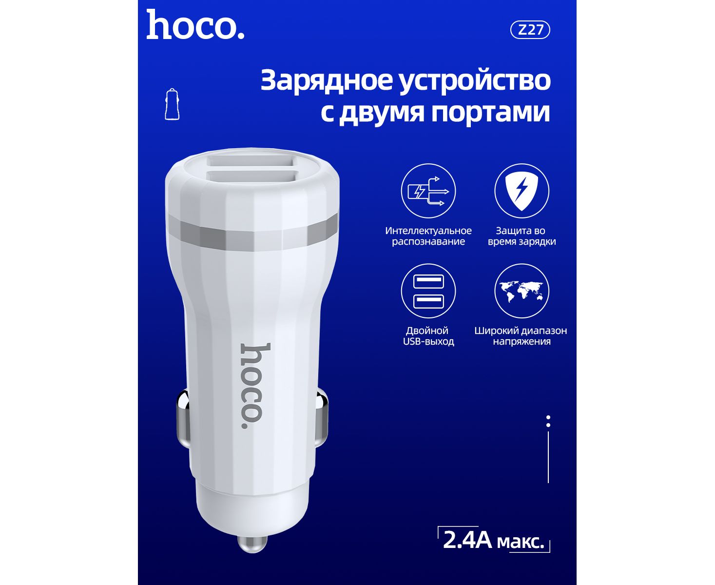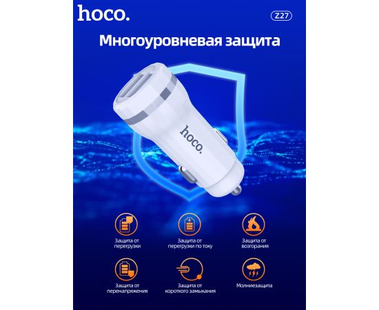 АЗУ HOCO Z27 Staunch dual port+Lightning 2.4A White