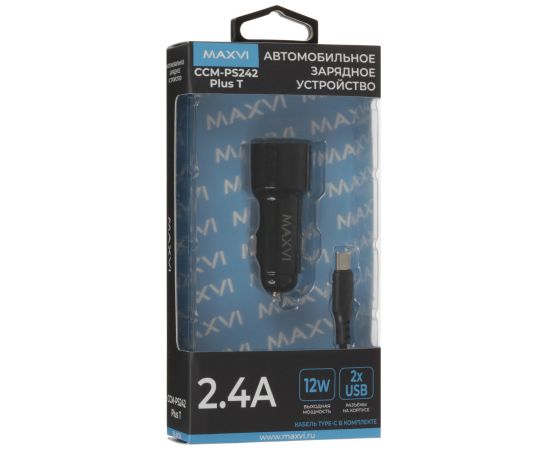 АЗУ Maxvi CCM-PS242 Plus T 2хUSB 2.4А + кабель Type-C 1м, black