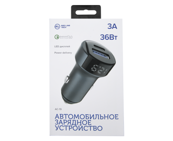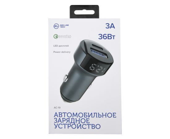 АЗУ Red Line Tech USB (QС 3.0 18W) + Type-C (PD 20W) (модель АС-19), 3A серый