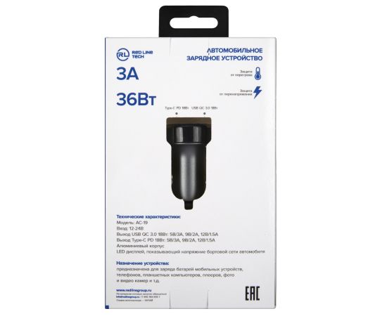 Автомобильное зарядное устройство Red Line Tech USB + Type-C, 3A Grey (УТ000018617) — компактное и удобное в эксплуатации изделие, предназначенное для восполнения емкости смартфона, плеера, часов, навигатора во время путешествия. На верхней части модели есть два разъема: USB и USB Type-C, которые позволяют одновременно подключать до двух устройств. Корпус изготовлен из высокопрочного пластика, устойчивого к механическому воздействию и деформации, поэтому надолго сохраняет первоначальный вид. Выходное напряжение составляет 5 В, чего достаточно для быстрого заряда батареи. Сила тока составляет 3 А. Для начала работы коннектор необходимо подключить к прикуривателю автомобиля.