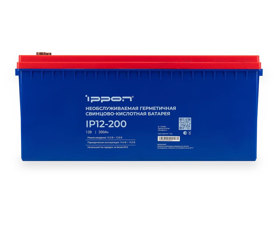 Герметичная необслуживаемая кислотно-свинцовая батарея напряжением 12В и емкостью 200Ач для систем бесперебойного питания.