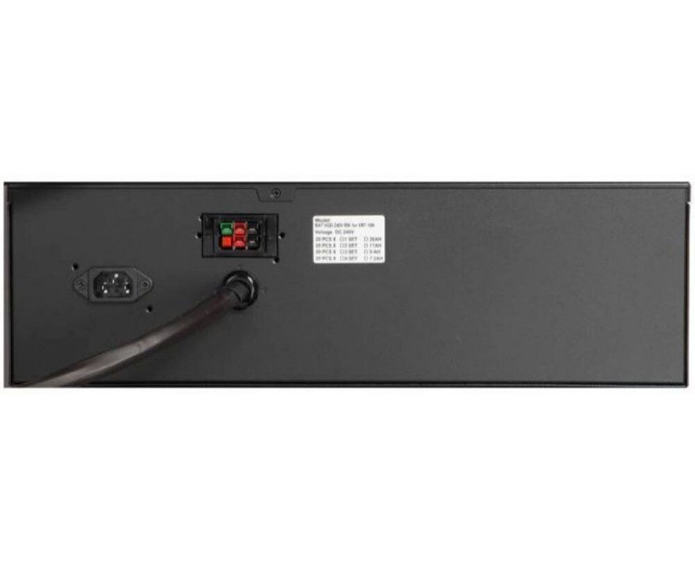 Состоит из двадцати 12 В батарей емкостью 9 Ач, а также имеет встроенный блок розеток (4 х IEC 320 C13 + 4 x IEC320 C19).