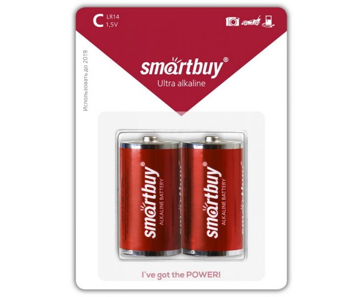 Батарейка Smartbuy LR14, C, щелочная (SBBA-C02B) блистер 2 шт
