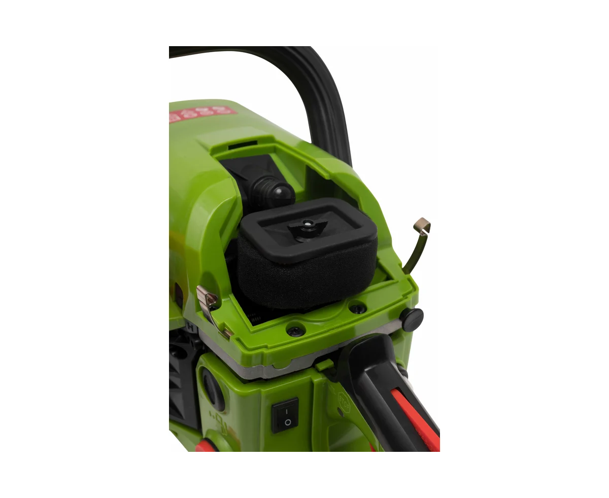 - Автоматическая система смазки цепи обеспечивает равномерную подачу масла для безопасной и эффективной работы.