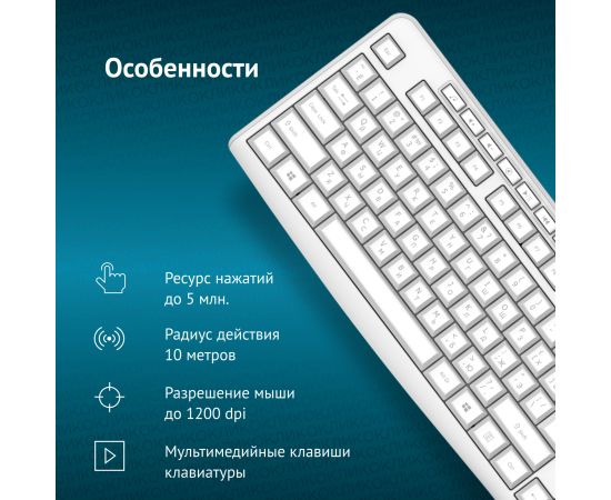 Беспроводная клавиатура OKLICK K225W (1875235) белый USB Multimedia