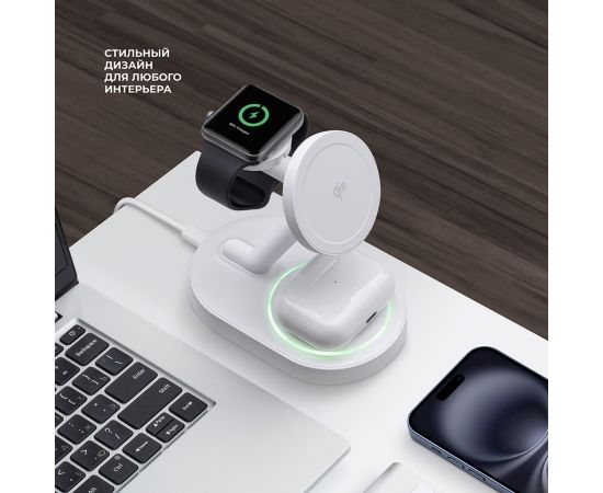 Беспроводная зарядная станция 3 в 1 MagSafe QI2 NEO, белый, Deppa