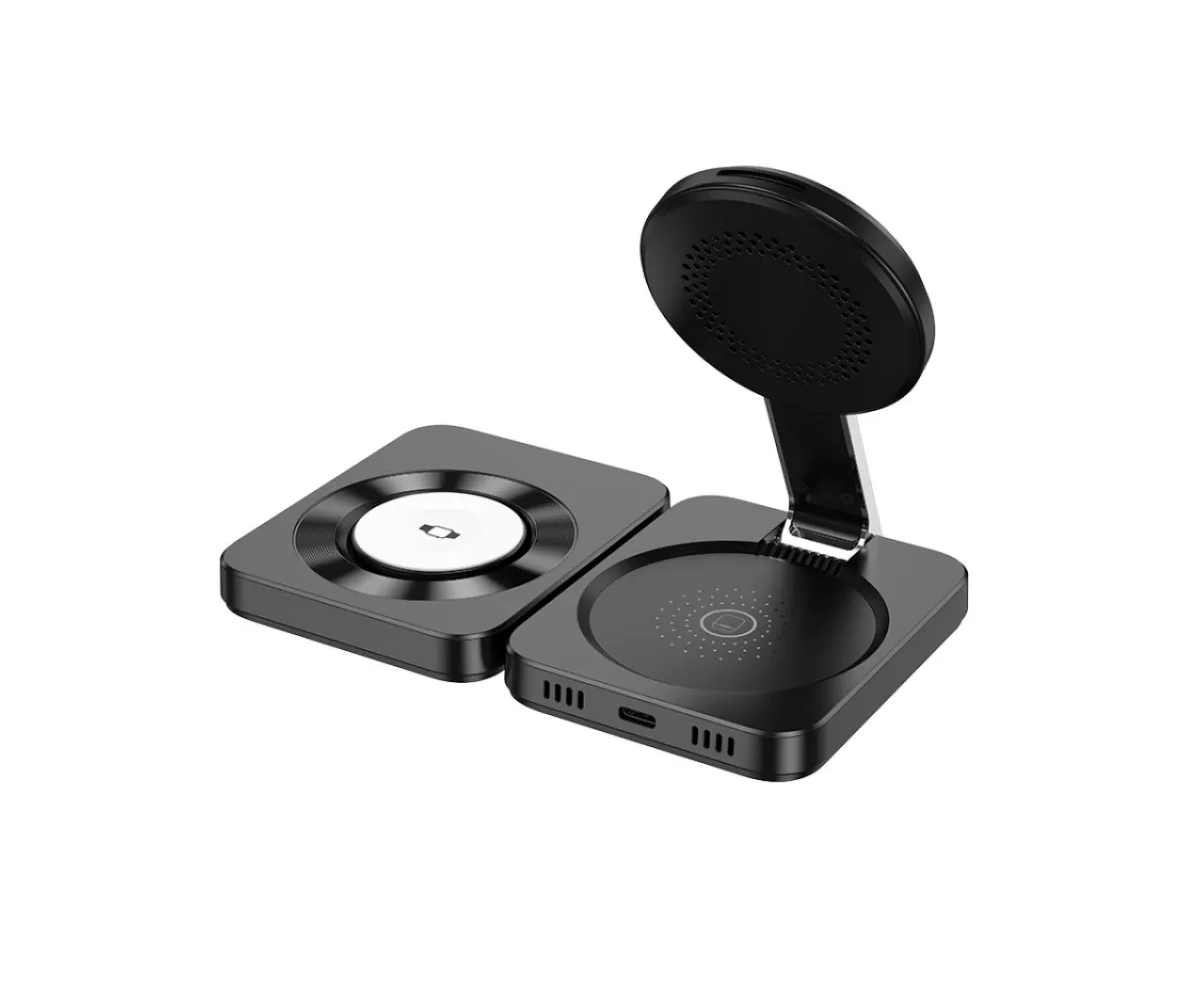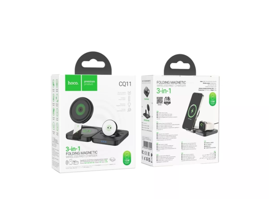 Беспроводное ЗУ HOCO CQ11 Ingenious 3-in-1 folding magnetic wireless charger (черный)