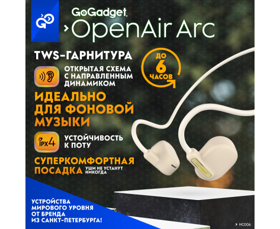 Беспроводные наушники GoGadget OpenAir Arc, зашейная дуга, открытый динамик, 1 микрофон, 90 мАч, до 6 ч БЕЛЫЙ