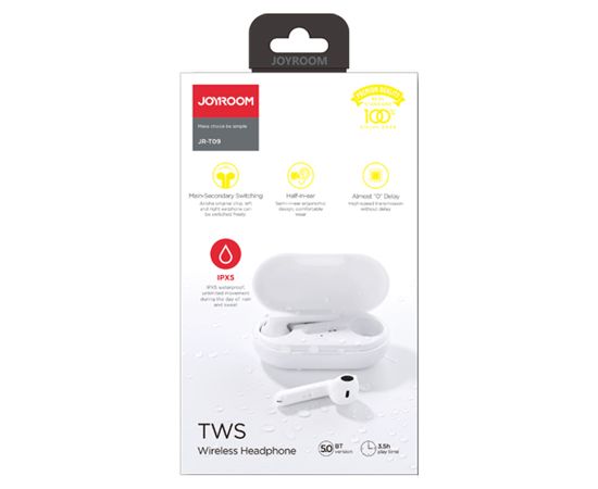 Беспроводные наушники TWS JOYROOM JR-T09, Bluetooth, белый